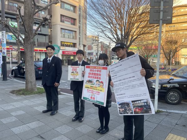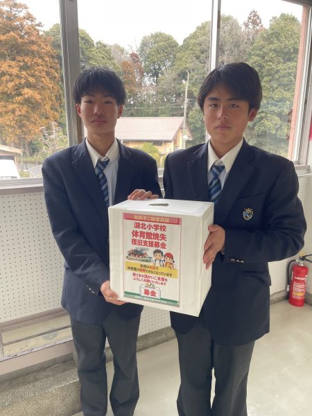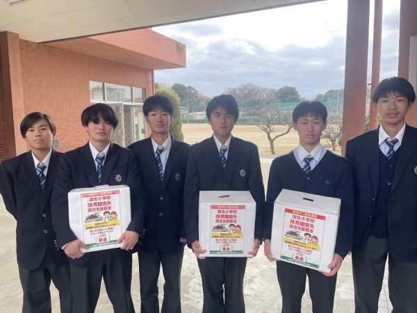本校生徒会および野球部生徒は、我孫子二階堂高等学校として、我孫子市立湖北小学校体育館復旧支援を目的とした募金活動を実施しました。